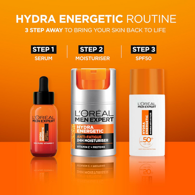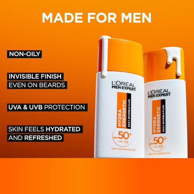 L'Oreal Paris Men Expert Hydra Energetic Invisible Anti-UV Face Fluid SPF50+ (50ml) is a high-performance daily protector that helps defend skin against harmful UV rays while re-energising its appearance.
