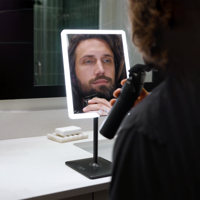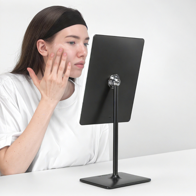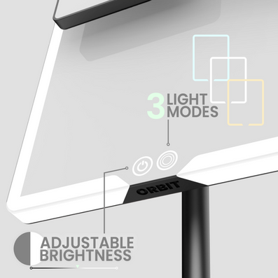 Crafted from streamlined aluminium and completely cable-free, its tall structure features a generous 11'' high-definition mirror face powered by a long-lasting 4000mAh rechargeable battery. An integrated dimmable ring light allows you to switch between three lighting tones - Soft Warm, Neutral White and Natural Daylight - ensuring perfect illumination at any time of day. The innovative 360° multi-rotational magnetic ball mount lets you tilt, turn and rotate the mirror into any position, portrait or landscape, and you can even detach the mirror face for handheld use to achieve precise angles for hairstyling or makeup application. Also included is the Mini Orbit 7X magnifying mirror, which magnetically attaches when you need intricate detailing such as brow shaping, skincare or precise touch-ups, complete with its own lighting modes and soft-touch controls for effortless brightness adjustments.