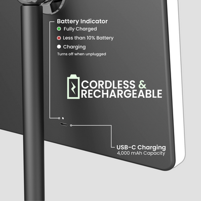 - Rechargeable 4000mAh battery - up to 5 hours of continuous light, with USB-C charging cable included.