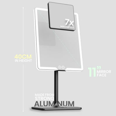 - Large 11'' mirror face - ample viewing area for makeup, skincare and hair routines.