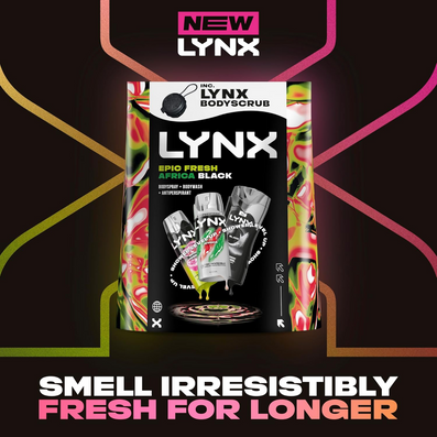 - 1 x Lynx Africa 48h Deodorant Body Spray (150ml) - delivers 48 hours of Lynx's high-definition, G.O.A.T. Squeezed Mandarin and Sandalwood fragrance. Lynx Africa Bodyspray gives you 48 hours of odour protection with its revolutionary dual-action odour-busting Zinc technology, keeping you smelling fresh and feeling relaxed all day. G.O.A.T. This great-smelling Lynx deodorant aerosol comes in an infinitely recyclable can - fresher you, cleaner planet. Cruelty-free.