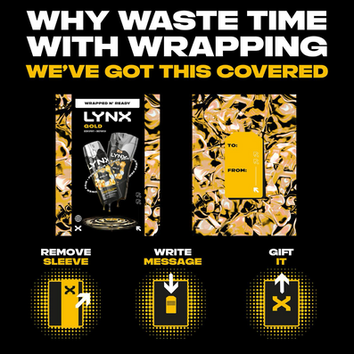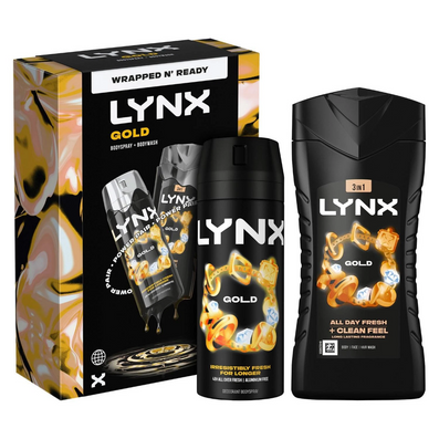 Lynx Gold Body Care Duo Gift Set includes body wash and body spray together, fragrancing him with a dark Vanilla and Oud Wood scent. Perfect for any occasion, this gift for him makes the ultimate Father's Day present, secret Santa surprise or all-year-round gift.