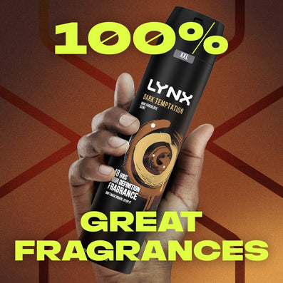 Lynx XXL Dark Temptation 48h Dark Chocolate Deodorant Body Spray (250ml) delivers a smooth Dark Chocolate scent which is impossible to resist and provides 48 hours of odour protection with its revolutionary dual-action odour-busting Zinc technology, keeping you smelling fresh and feeling confident all day.