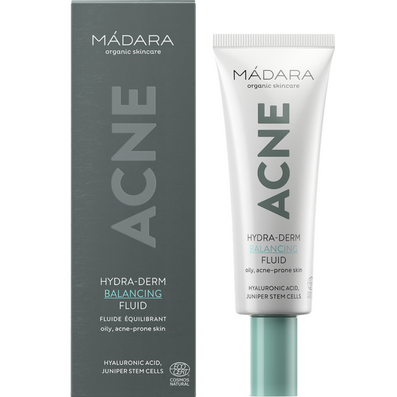 Madara Acne Hydra-Derm Balancing Fluid (40ml) is a lightweight, non-comedogenic moisturiser which delivers deep, balanced hydration to oily and breakout-prone complexions without feeling heavy on the skin.