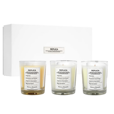 Maison Margiela Replica Jar Candle Trio Gift Set is a trio of decorative, fragranced candles created and manufactured in the South of France by an expert candle manufacturer, each candle taking 7 hours to complete.