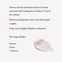 - 1 x Maria Nila Luminous Colour Protecting Shampoo (350ml) - a colour-preserving shampoo, skillfully formulated to rebuild and strengthen the hair structure. It illuminates your hair with an extra shine, making both your natural and dyed hair colour radiate vibrancy. The shampoo combines the power of Pomegranate Extract and Colour Guard Complex, providing optimum protection to the hair and scalp while minimising the loss of colour associated with washing, heat styling, UV rays, and free radicals. The Luminous Colour Shampoo has been created to offer an enchanting fruity scent of apple, blackberry, and peach, ensuring a delightful sensory experience during use. Cruelty-free & vegan-friendly.