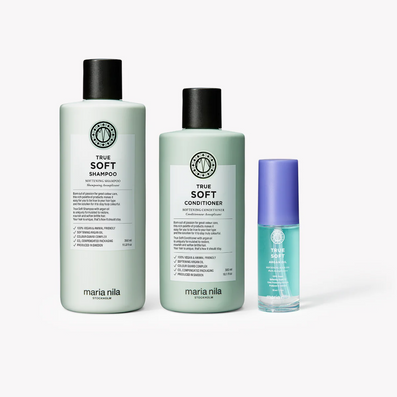 Maria Nila True Soft Hair Care Beauty Bag is a deeply moisturising hair care set tailored for naturally dry, frizz-prone hair.