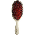 Mason Pearson Popular Bristle & Nylon Hairbrush Ivory BN1 is a large, expertly crafted hairbrush that combines boar bristles with durable nylon tufts for optimal performance on longer, denser hair types. The boar bristles help distribute your scalp's natural oils for enhanced softness and shine, while the nylon tufts penetrate more deeply to detangle and smooth thicker or textured strands with ease. The result is polished, manageable hair that looks and feels healthier.