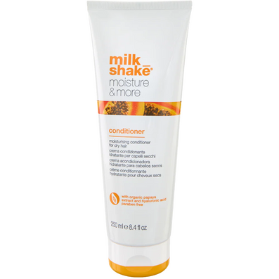 - 1 x Milk_Shake Moisture & More Conditioner (250ml) - a moisturising conditioner for dry hair. Formulated with Organic Papaya Extract, Integrity 41 and Hyaluronic Acid, it has an anti-ageing effect, maintaining optimum hydration. Protecting the tone and vibrancy of hair colour, it delicately moisturises dry hair, bringing softness and manageability. Completely paraben & cruelty-free.