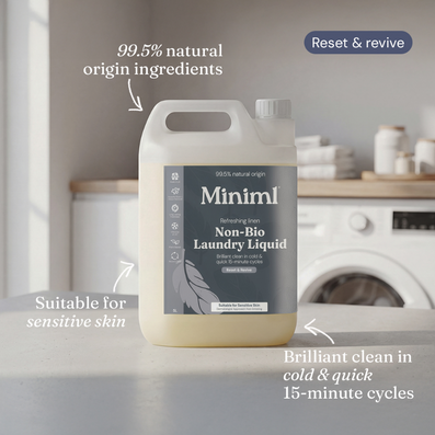 Miniml Non-Bio Laundry Liquid Fresh Linen (5000ml) is an eco-friendly, biodegradable and low-foaming liquid which produces excellent results on both whites and coloureds even at lower temperatures.