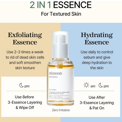 Mixsoon Bean Essence (50ml) offers a jelly-like texture that enhances skin texture and refines pores effectively from the first use, providing deep hydration. This essence works to moisturise and nourish the skin while eliminating dead skin cells for a radiant, dewy finish.