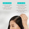 - Shake well. Part hair into sections, apply 3-6 drops in each section, and massage gently into scalp.