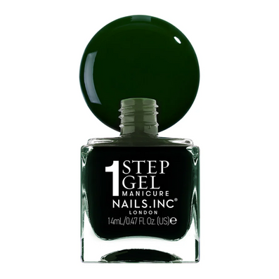 Nails Inc. It's Topless 1-Step Gel Jasmine Nail Polish (14ml) is a forest green, all-in-one nail polish that combines a base coat, treatment, colour and top coat in one bottle.