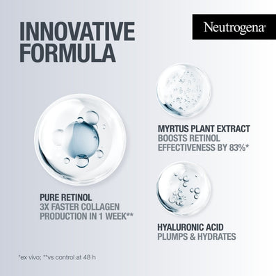 The innovative, well-tolerated formula comprises Pure Retinol, a dermatologist-approved form of Vitamin A. This potent ingredient stimulates cell renewal at the skin's surface and boosts Collagen production, resulting in rejuvenated, revitalised skin with reduced fine lines, dullness, wrinkles, and pigmentation spots. Myrtus Plant Extract, renowned for its skin-regenerating benefits, enhances Retinol's effectiveness by 83% (vs Retinol alone). The cream also includes Hyaluronic Acid to intensely hydrate, moisturise, and plump the skin. Such is the cream's effectiveness that 100% of testers reported noticeable results.