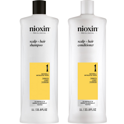 - 1 x Nioxin System 1 Cleanser Shampoo for Natural Hair with Light Thinning (1000ml) - a derma-purifying shampoo enriched with refreshing Peppermint Oil for use on natural hair with light thinning as the first step of a three-part Nioxin regimen. This shampoo effectively removes dirt, excessive oil and other environmental residue from the scalp and hair, and has been professionally formulated to strengthen the hair and enhance its structure, preparing both hair and scalp for a complete hair thickening treatment with Nioxin's three part system.