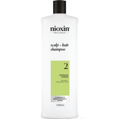 Nioxin System 2 Cleanser Shampoo for Natural Hair with Progressed Thinning (1000ml) is a derma-purifying shampoo enriched with refreshing Peppermint Oil for use on natural hair with progressed thinning as the first step of a three-part Nioxin regimen.