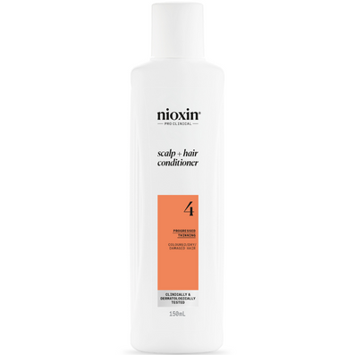 - 1 x Nioxin System 4 Scalp Therapy Conditioner for Coloured Treated Hair with Progressed Thinning (150ml) - a lightweight revitalising conditioner for use on colour-treated hair suffering from progressed thinning and forms the second step in a three part Nioxin regimen. Professionally formulated to strengthen the hair and increase resilience, it reduces hair loss due to breakage and helps to optimise moisture balance from root to tip. It effectively refreshes hair and scalp, and leaves the hair shiny and looking fuller.