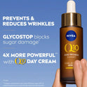 Nivea Q10 Anti-Wrinkle Expert Dual Action Serum (30ml) prevents and visibly reduces wrinkles within just two weeks of regular use. Enriched with Anti-Glycation Technology with the highest concentration of pure Coenzyme Q10, this clinically proven formula is four times more potent than using a day cream alone, acting as a powerful shield against sugar damage.
