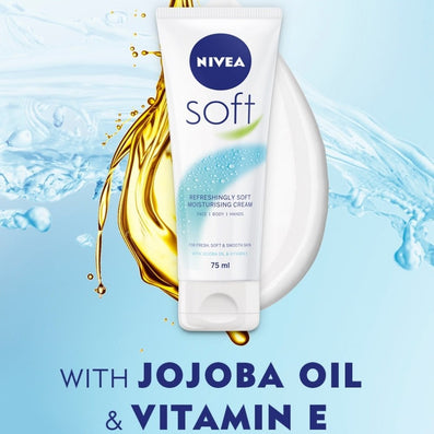 Nivea Refreshingly Soft Moisturising Cream with Jojoba & Vitamin E (75ml) is a highly effective, revitalising moisturising cream for everyday use which quickly absorbs and refreshes the skin, leaving it soft and supple.