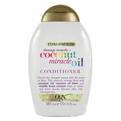 - 1 x OGX Damage Remedy Plus Coconut Miracle Oil Conditioner (385ml) - an ultra-rich, reviving formula which helps to repair, soften, and revive damaged hair. Enriched with Coconut Oil, Vanilla Bean Extract, and Essence Of Tiare, it helps calm frizz and smooth hair, leaving it feeling silky smooth and full of bounce and shine. Drench dry, damaged hair with the fragrance of Maui.