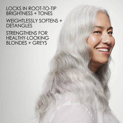 It excels at untangling and softening delicate blonde hair, all without burdening the roots, a common issue with many conditioners. What sets this conditioner apart is its exclusive status as the only purple conditioner featuring the groundbreaking OLAPLEX Bond Building Technology. This technology works wonders, reinforcing the hair's bonds to create robust, radiant blondes and greys. Cruelty-free & vegan-friendly.