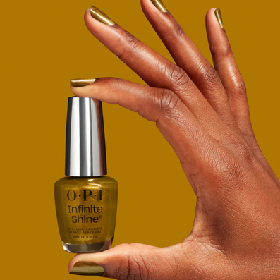 OPI Infinite Shine Gel-Like Nail Lacquer Have A Brittle Fun (15ml) is a is a metal gold shade with deep brassy undertones. Achieve a flawless, long-lasting gel effect manicure with no UV light activation or soak-off removal required thanks to OPI's Pre-Cured Gel Technology which provides chip and scratch resistant colour with unstoppable durability. The number one nail lacquer brand has revolutionised the way we paint our nails yet again with their high definition colour polish and glossy shine lasting up to 11 days, easily unlocking with remover for speedy, damage-free removal.