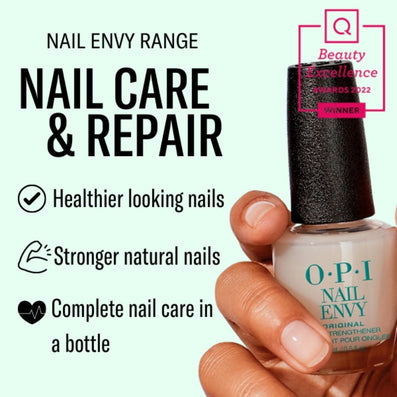- Apply two thin coats of OPI Nail Envy on clean nails.