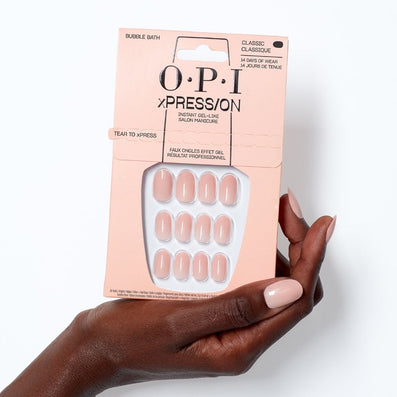 OPI xPress/On Nails Bubble Bath (30x) provide an instant gel-like salon manicure with bubbly pink press-on nails in a short, classic length with a rounded shape.