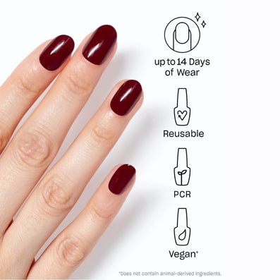 With a remarkable 14-day wear, these press-on nails offer professional-grade colour shades, nail art designs, and special effects. Experience head-turning wear with the convenience of reusable nails that are both eco-conscious, made from up to 94% post-consumer recycled materials. Cruelty-free & vegan-friendly.