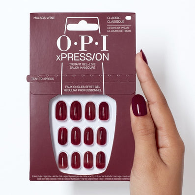 OPI xPress/On Nails Malaga Wine (30x) provide an instant gel-like salon manicure with red wine press-ons in a short, classic length with a rounded shape.