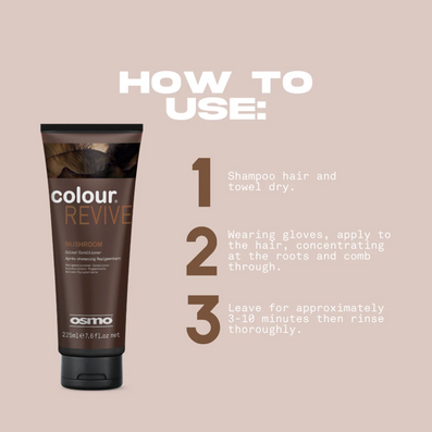 - Wearing gloves, apply Colour Revive to the hair, concentrating on the roots & comb through.
