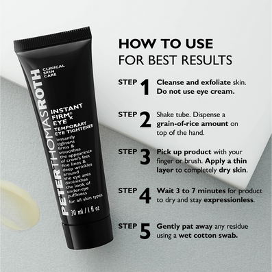 Peter Thomas Roth Instant FIRMx Eye Temporary Eye Tightener (30ml) is a quick-fix eye treatment which instantly diminishes the appearance of under-eye bags, fine lines, deep wrinkles and crow's feet, delivering a temporary effect that can last all day.