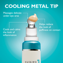 - Squeeze out a small amount. Use the cooling metal tip to gently spread and massage onto under-eye area until absorbed.
