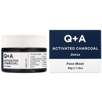 Q + A Activated Charcoal Face Mask (50g) draws out impurities from the skin, and is especially effective on stubborn blackheads. It has a 98.8% natural detoxifying formula which will leave your skin feeling purified.