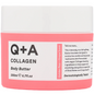 Q+A Collagen Body Butter (200ml) is a luxuriously rich, deeply moisturising formula designed to nourish and revitalise dry or tired skin. Blending Hydrolysed Vegetable Protein, Shea Butter and Squalane, this indulgent body butter helps to boost elasticity, maintain firmness and restore a healthy glow. Its silky texture and pale pink hue, derived from moisturising Hectorite, create a sensory experience that leaves skin soft, supple and radiant. The crisp, fruity scent of Golden Pear, Grape, Green Apple and Quince adds a refreshing finishing touch.