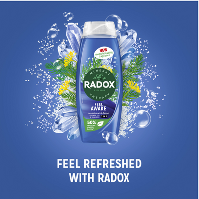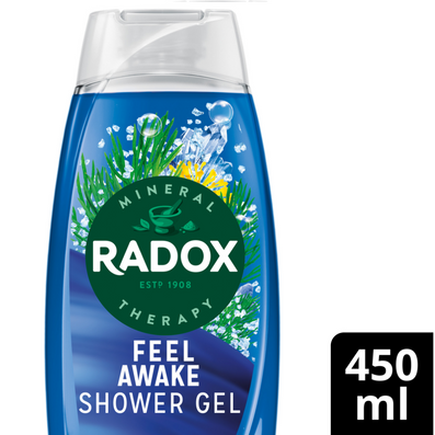 Radox Shower Gel Feel Awake (450ml) provides an indulgent shower experience, leaving skin softly fragrant and hydrated.