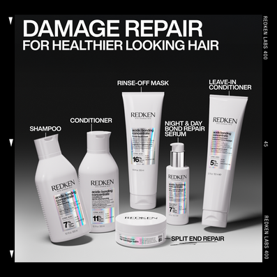 - 1 x Redken Acidic Bonding Concentrate Hair Bandage Balm (75ml) - a targeted leave-in treatment designed to visibly seal dry, damaged and split ends in just one use. Created for weakened hair in need of intensive care, it helps improve smoothness and resilience while supporting long-term hair strength. Formulated with an 8% Bonding Care Complex and Citric Acid + Madecathenol, the balm works to relink broken bonds deep within the hair fibre while binding the cuticle layers to the cortex to instantly seal damaged ends. With continued use, hair feels stronger, smoother and more elastic, with visibly healthier-looking lengths. The rich balm texture melts into the hair without heaviness and is finished with a warm, indulgent scent featuring salted lemon mandarin, blood orange jasmine and cedarwood sugared amber.