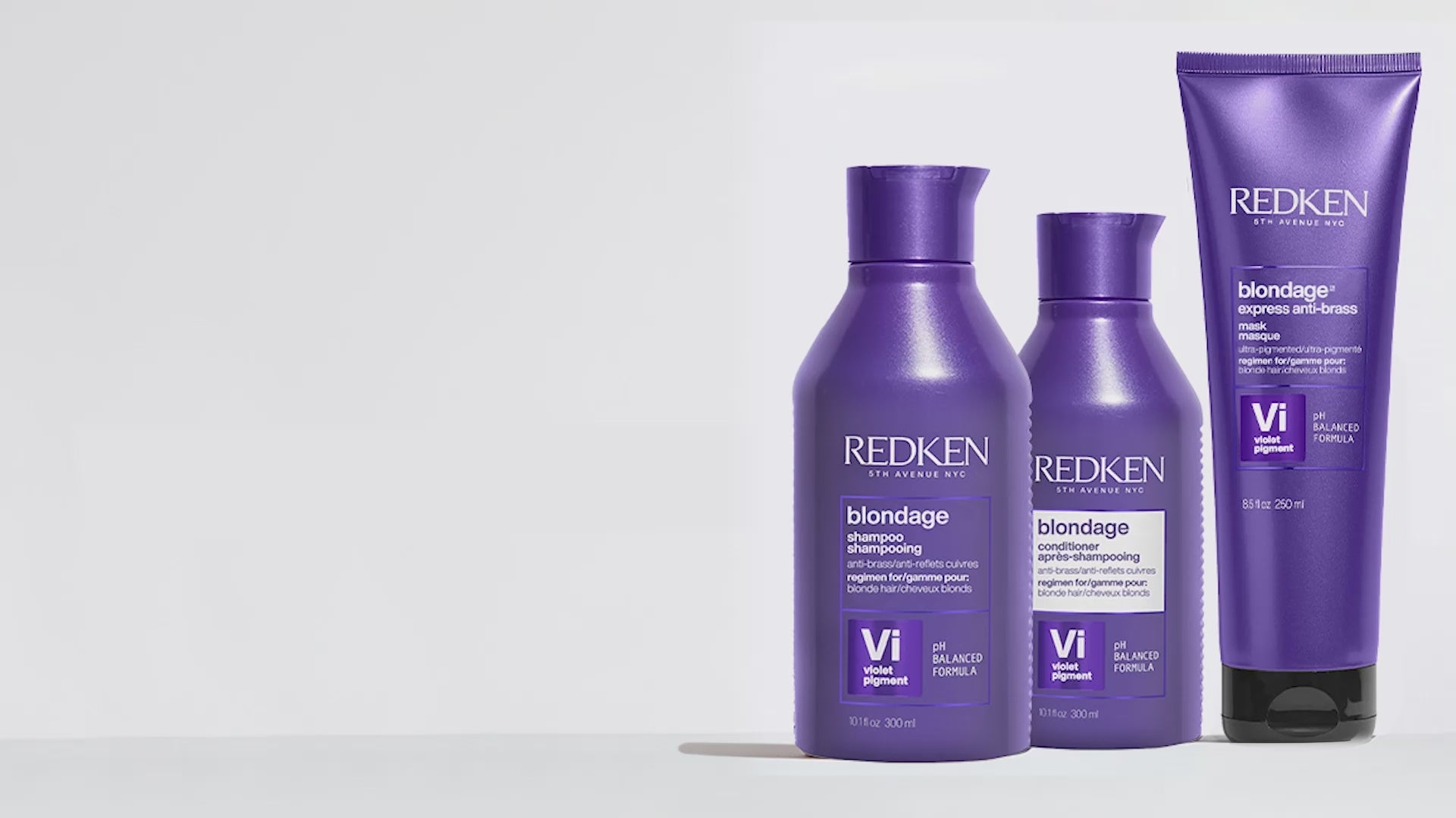 - Redken Colour Extend Blondage Anti-Brass Shampoo (300ml) - a colour-depositing shampoo designed to tone & strengthen blonde hair. Enriched with ultra-violet pigments, this shampoo banishes unwanted brassiness and yellow undertones, making it perfect for blonde, super-lightened, de-coloured or streaked hair. Formulated with Citric Acid, the pH balanced shampoo repairs and strengthens hair from the core.Featuring Redken's Triple Acid Protein complex, this shampoo expertly cleanses, tones, strengthens and brightens all at once, protecting hair from breakage whilst promoting bright, luminous locks with salon-worthy shine.