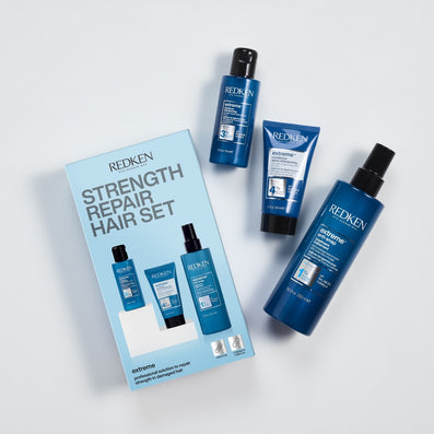 Redken Extreme Strength Repair Discovery Set offers three of Redken's best-selling products in a great value-for-money bundle including travel sizes of strengthening, repairing shampoo and conditioner together with a multi-benefit leave-in treatment spray.