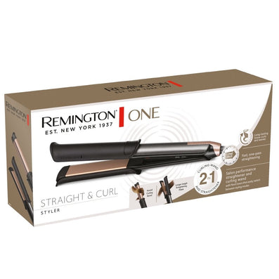 Remington ONE 2-in-1 Straightener & Curler S6077 is a salon performance straightener and curling wand which effortlessly creates smooth straight results, soft curls and waves.