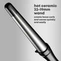 - 32-19mm ceramic tapered wand for soft curls and waves.