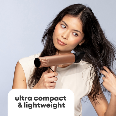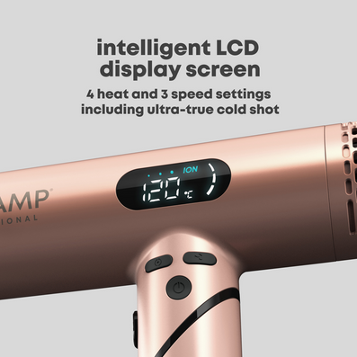 Revamp Dynamic Radiance X Shine Digital Intelligent Ionic Hair Dryer Gold is a powerful yet compact styling tool designed to deliver fast, frizz-free results without excessive heat. Its intelligent digital brushless motor operates at 110,000rpm, producing a high-speed airflow of up to 150km/h, while 225 million ions per cm³ smooth the cuticle for sleek, radiant hair. With four heat and three speed settings - including a true cold shot - you can customise your styling experience to suit any hair type or texture. The foldable, twist-and-rotate handle makes it ideal for travel and easy storage.