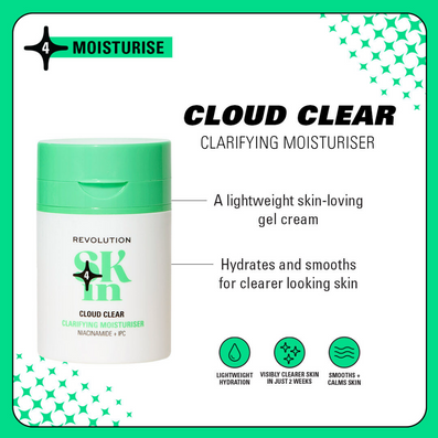 Revolution Skincare Cloud Clear Clarifying Moisturiser (50ml) is a lightweight gel-cream moisturiser expertly formulated to hydrate and clarify blemish-prone and oily skin without irritation.