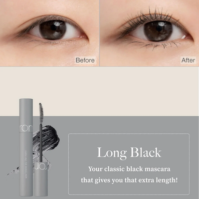 ROM&ND Han All Fix Mascara L01 Long Black (7g) is a featherlight Korean mascara designed to lift, curl and define lashes with long-lasting hold.