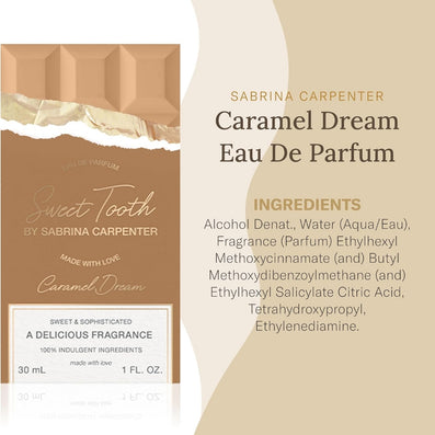 Sabrina Carpenter Sweet Tooth Caramel Dream Eau De Parfum (30ml) is a decadent oriental Vanilla fragrance for women with a delightful Caramel twist, oozing delectably gourmand notes. At once playful and sophisticated, the composition combines rich flavours with luxurious scents.