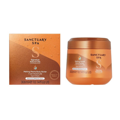 Sanctuary Spa Signature Collection Melting Argan Oil Pearls Body Butter (300ml) contains a rich, creamy blend of Shea and Cocoa Butters together with Sweet Almond Oil and Macadamia Nut which melts into the skin to intensely moisturise, while Sanctuary Spa's signature fragrance of Jasmine, Grapefruit and Vanilla indulges the senses.