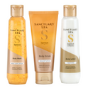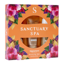 Sanctuary Spa Signature Restoring Set is an attractively presented 3-piece spa gift comprising body wash, body scrub and body lotion fragranced with the Sanctuary Spa signature scent of Jasmine, Grapefruit and Vanilla to effectively calm the senses.