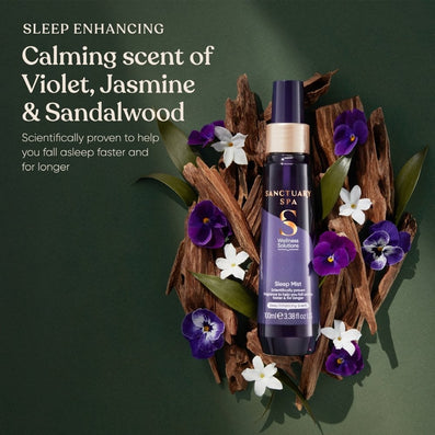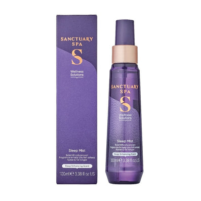 Sanctuary Spa Wellness Solutions Sleep Mist (100ml) is fragranced with a heavenly blend of Violet, Jasmine and Sandalwood and has been scientifically proven to help you fall asleep more quickly and for longer.