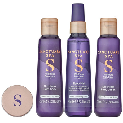 - 1 x Sanctuary Spa Wellness Solutions De-Stress Body Lotion (75ml) - a lightweight, nourishing lotion that hydrates the skin, leaving it soft, smooth, and supple. Cruelty-free & vegan-friendly.