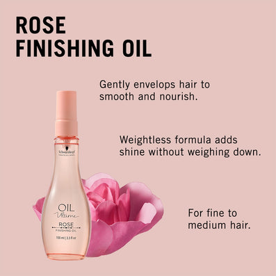 Schwarzkopf Professional Oil Ultime Finishing Rose Oil (100ml) is a weightless finishing oil which distributes invisibly throughout your hair, softening and enhancing shine and brilliance with a luminous finish. Oil Ultime takes inspiration from aromatherapy, blending 100% natural oils to create premium formulas that provide powerful care, leaving hair with sublime shine and a gloriously weightless feel.
